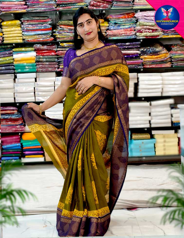 Fabric :-Crepe silk with Seko border -067